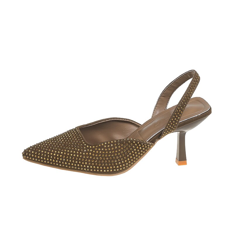 Summer Women Sandal Shoes Thin High Heel Pointed Toe Slingback Sandals Ladies Fashion Bling Cystal Party Dress Shoes