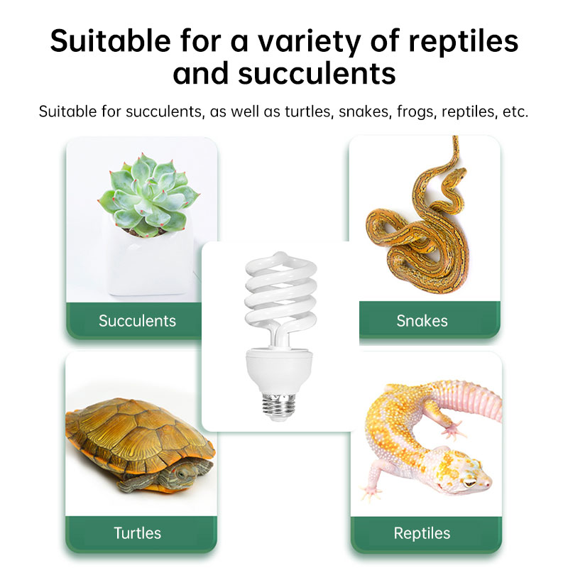 • Safe & Natural Light: Provides soft, non-harmful lighting that mimics the UVB spectrum of subtropical/tropical sunlight, creating a natural basking environment.